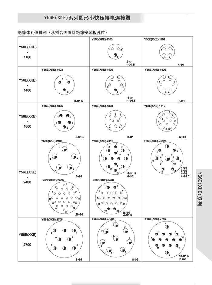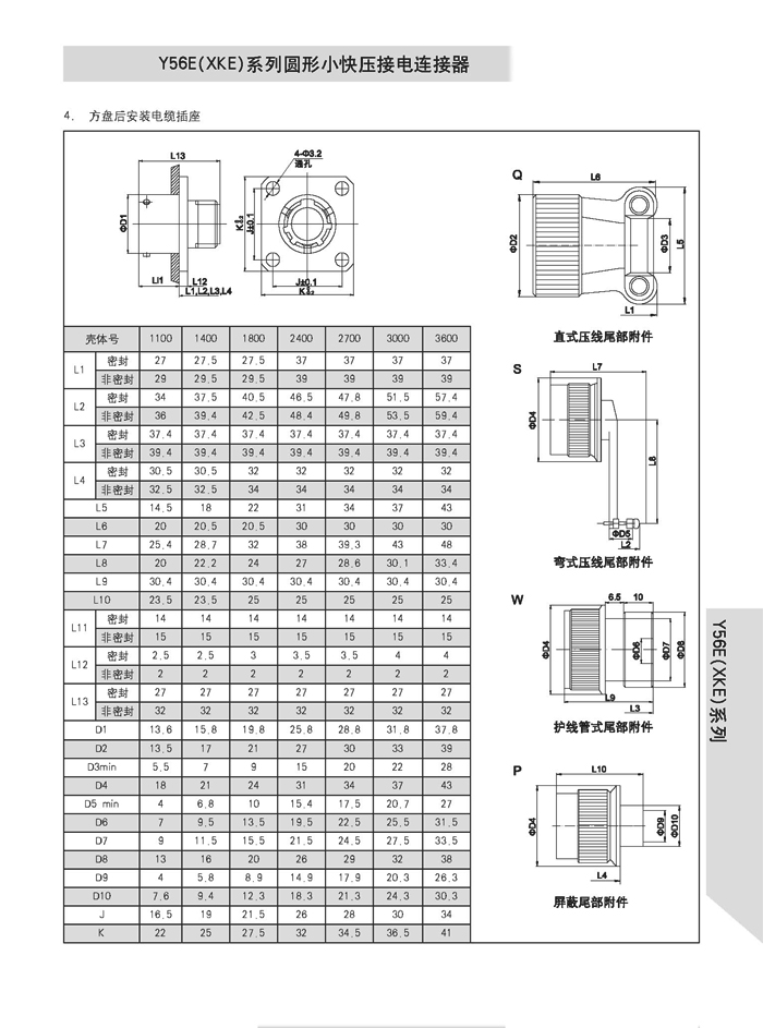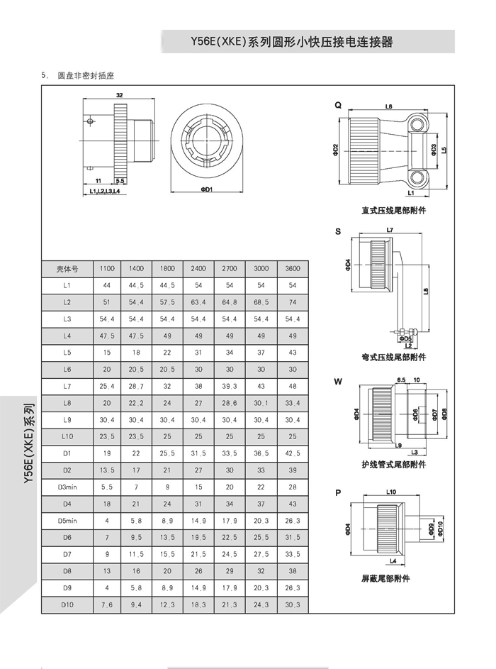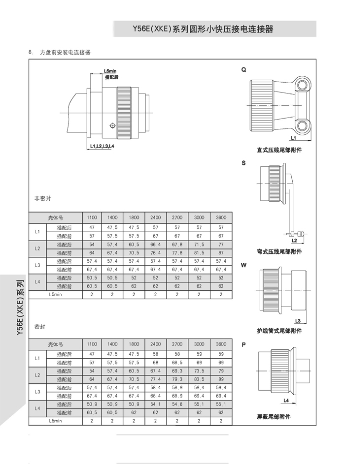 XKE圓形壓接式航空插頭,符合HB6112-86《XKE系列小圓形快速連接壓接型插頭座》標(biāo)準(zhǔn)的要求。該系列航空插頭的特點為卡口式連接,具有快速連接、分離、體積小、重量輕、接觸件密度高,可靠性高等優(yōu)點.接觸件與導(dǎo)線的連接為壓接端接(密封插座接觸件與導(dǎo)線的連接為焊接端接),接觸件可單個取出或送入,為后松后取式.該系列航空插頭有7個殼體,29個孔組,有密封,非密封品種.尾部附件有直式壓線,彎式壓線,護(hù)線管式,屏蔽式四個品種.產(chǎn)品具有可靠而又快速地連接和斷開無線電儀器和電器設(shè)備電路的特點.