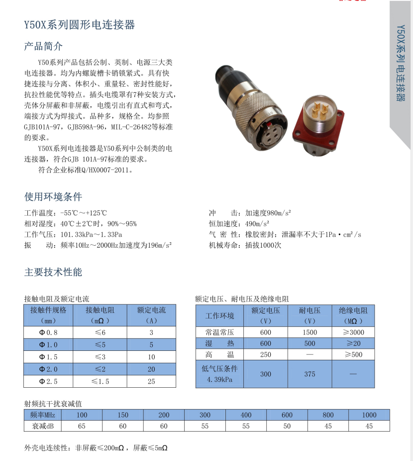 電連接器型號(hào) Y50X公制系列 方法蘭插座防水插頭:
