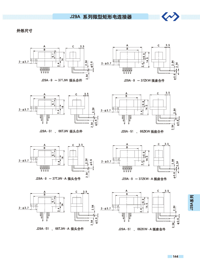 是矩形,體積小,芯數(shù)多,排列合理,與電纜線焊接方便。