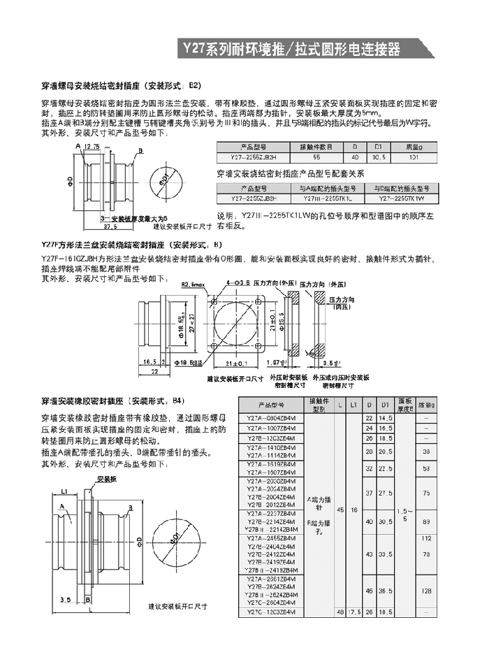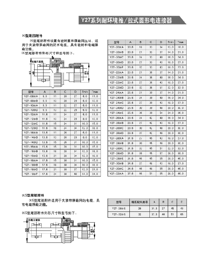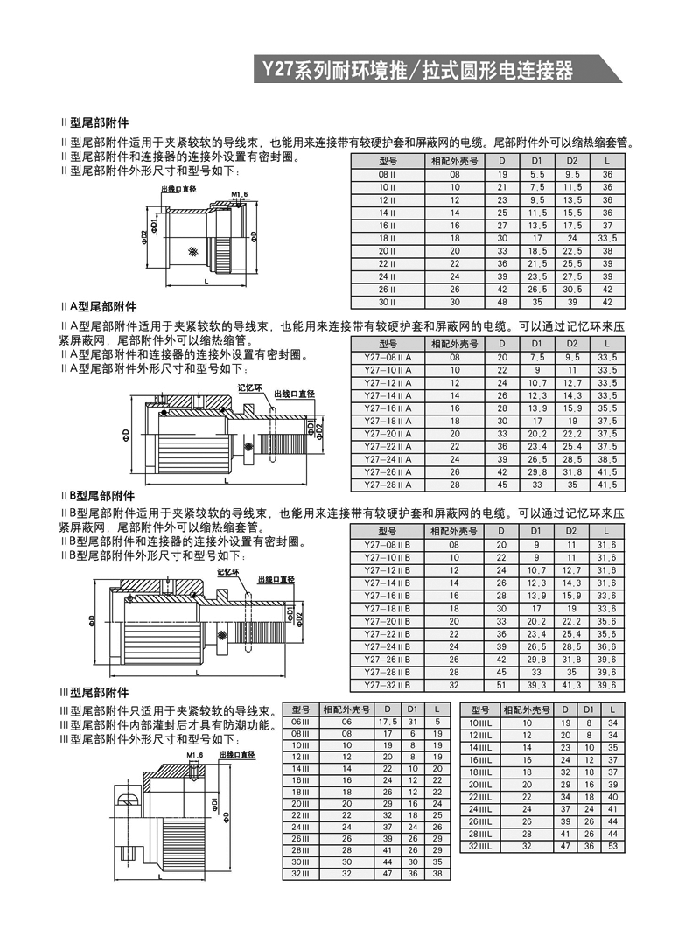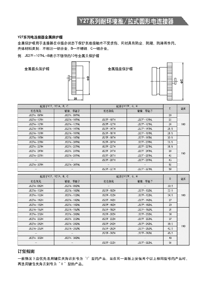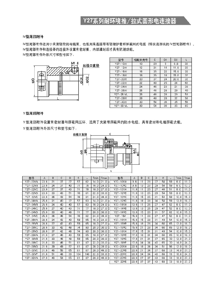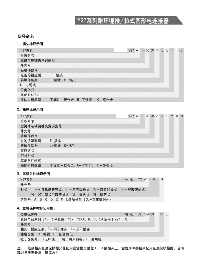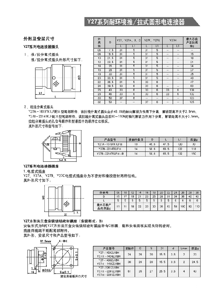 Y27系列推/拉式圓形航空插頭: