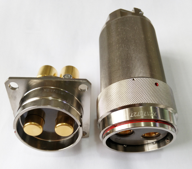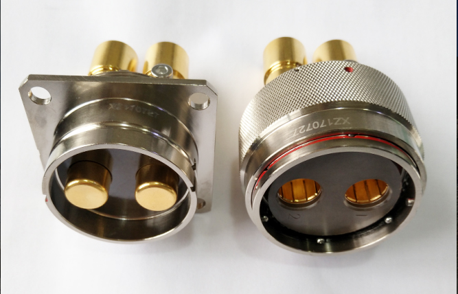 2芯200A推拉式電連接器,結構新穎,推拉式,連接方便,鎖緊可靠,防水防淋雨,是室外產品可選產品。與線纜采用壓接式