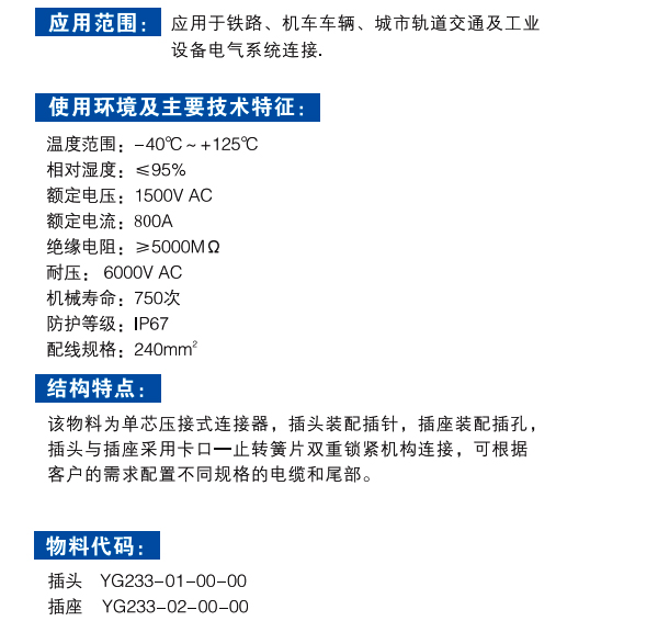 800A單芯高電流防水接插件,接觸件單芯,24mm針孔,額定電流800A,插頭與插座采用螺旋卡口連接,插針與插孔接觸密度高,無(wú)打火花現(xiàn)象,插座與插頭有防水密封層設(shè)計(jì),防水,防沙,防爆,不用時(shí)有防塵蓋保護(hù),外殼體有紅,簧,綠,黑,灰顏色區(qū)分,是電源車,風(fēng)電機(jī)組線路之間連接的好產(chǎn)品。
