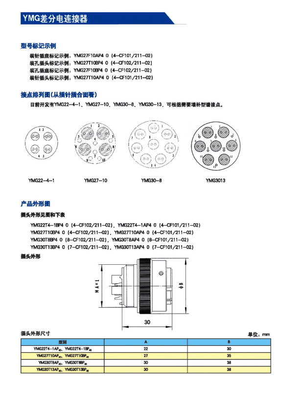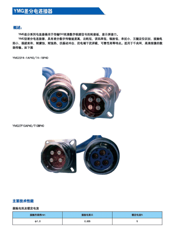 YMG圓形高速(信號)差分連接器: