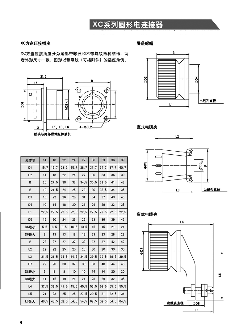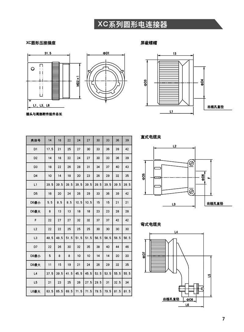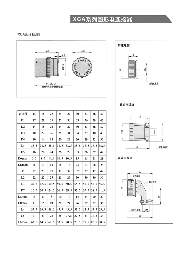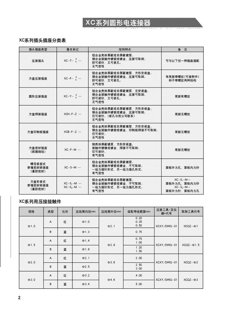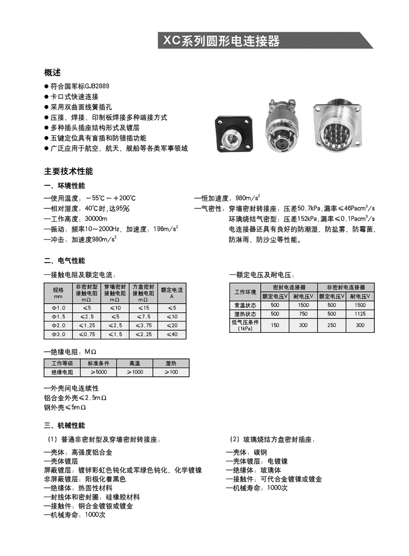 XC系列圓形線簧孔信號電連接器: