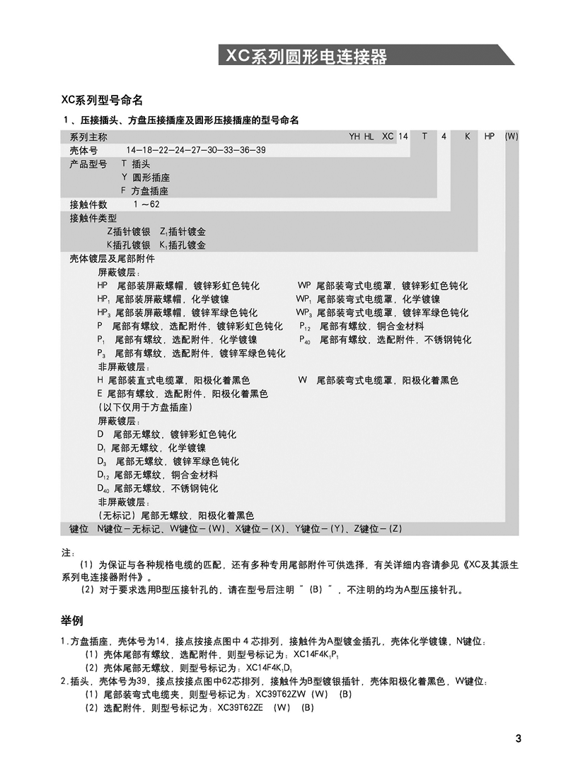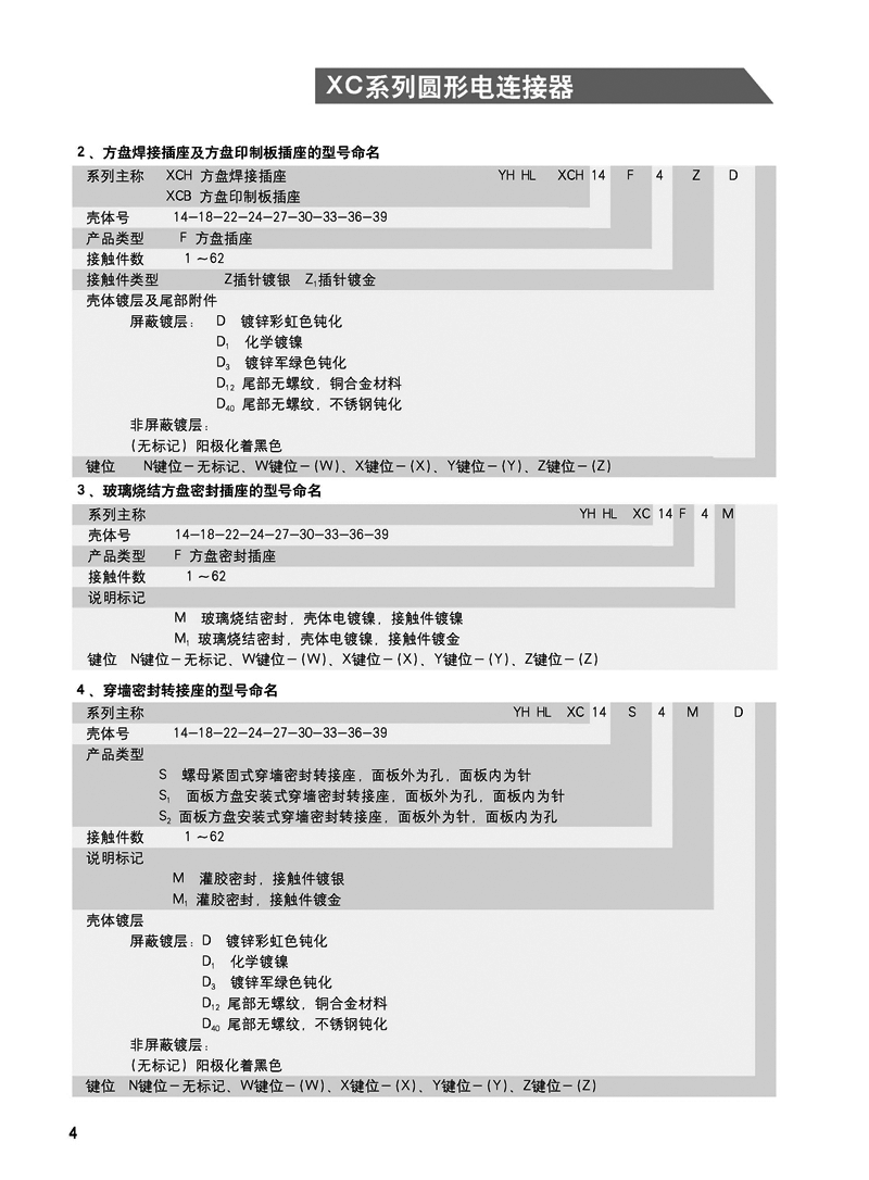 XC系列圓形航空插頭為低頻類電連接器。九種殼體號;4種接觸件規(guī)格;32種孔位排列。從1孔到62孔。采用卡口式快速連接系統(tǒng),操作方便,連接可靠,耐振動,抗沖擊。五鍵槽定位,具有盲插和防誤插功能。高可靠的雙曲面線簧孔使連接器插拔柔和,接觸電阻小,工作可靠。插座共有五種結(jié)構(gòu)形式選用。XC系列圓形線簧孔信號電連接器,符合國家軍用標(biāo)準(zhǔn)GJB2889。廣泛用于航天,航空,航海、鐵路、野戰(zhàn)通訊及各種儀器、儀表等設(shè)備中。