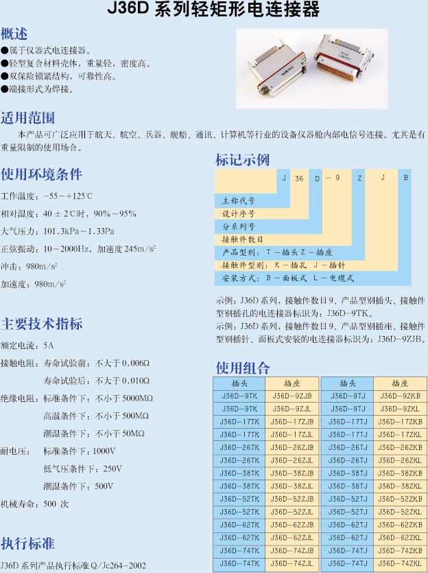 J36D系列矩形航空插頭: