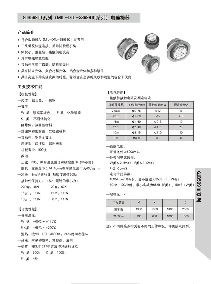 J599/26WB35PN+J1784A高密度航空插頭,是GJB599A標(biāo)準(zhǔn),參照美軍標(biāo)(MIL-DTL-38999K)III系列的要求,采用三頭 螺紋連接,并帶防松脫機(jī)構(gòu),尾部有三防性能,接觸件壓接可以取卸,插頭與插座對(duì)接有防誤插功能。殼體有金屬和復(fù)合材料。 適合用于風(fēng)沙和潮濕的場(chǎng)合,航空、航天電子設(shè)備上使用。