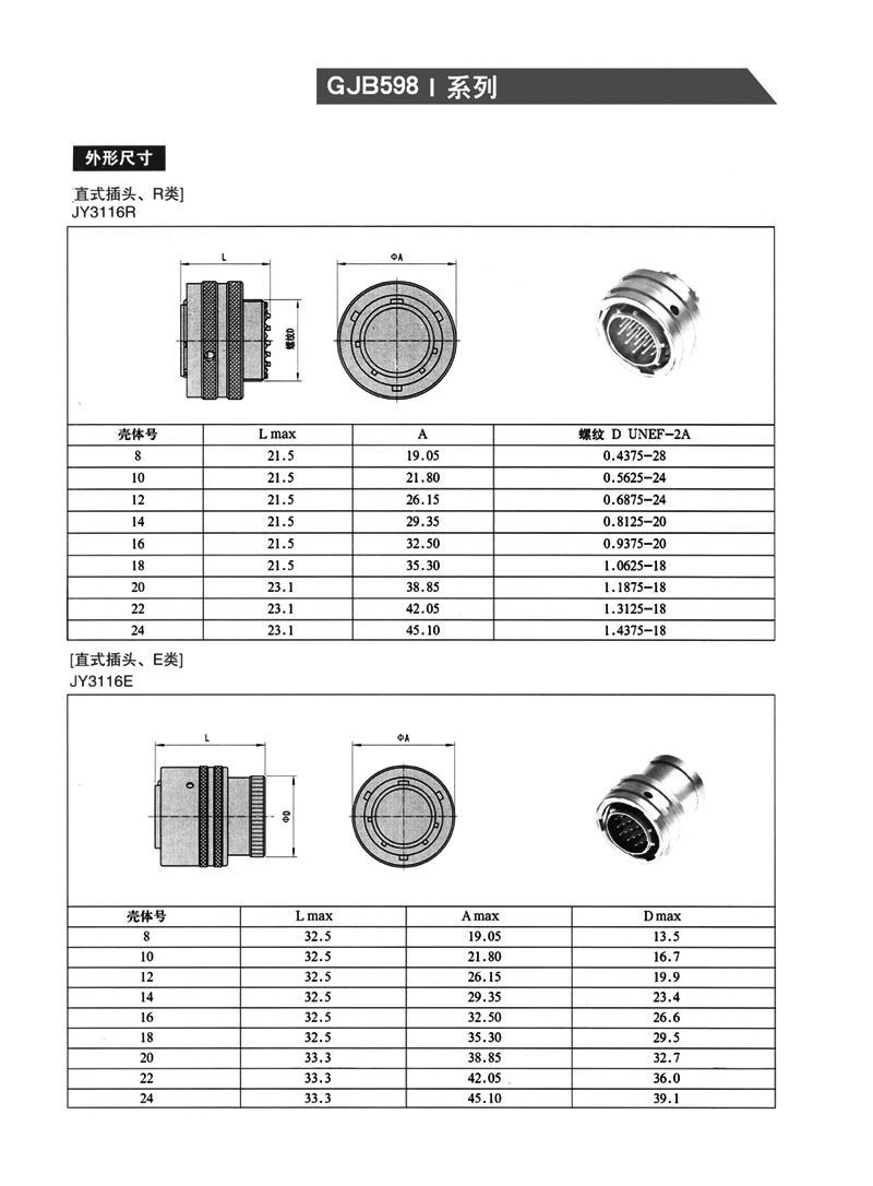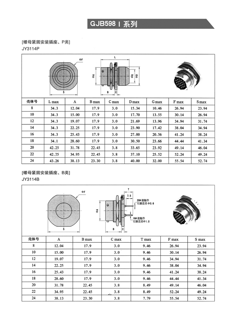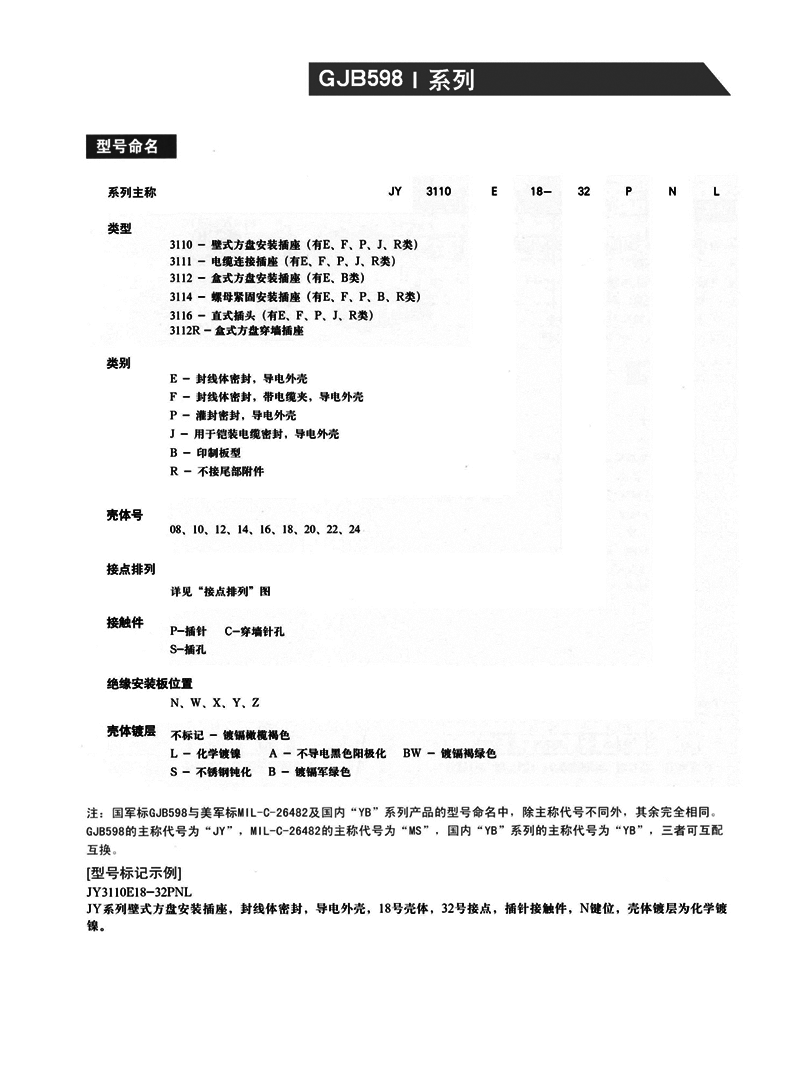 * 廣泛應用于各類軍用、民用設備中 ——殼體:鋁合金 ——鍍層:不標記 鍍鎘橄欖褐色,導電外殼 L 類 化學鍍鎳,導電外殼 A 類 黑色陽極化,非導電外殼 ——絕緣體:氯丁橡膠 ——封線體和密封圈:硅橡膠材料 ——接觸件:銅合金鍍金 ——隨機振動:頻率10~2000Hz 加速度147m/s2 ——沖擊:加速度490m/s2 ——機械壽命:500次 環(huán) 境 性 能: ——使用溫度:-55℃ ~ +125℃ ——相對濕度:40℃時,達95±4% ——耐鹽霧:鍍鎘:500小時;鍍鎳:48小時 ——密封性: 封線體密封 泄露率小于4.6×102 Pa cm3/s 燒結(jié)密封 泄露率小于0.1Pa cm3/s http://www.newyield.net/Product/yuanxinghangkongchatouhangkongjiechajian/