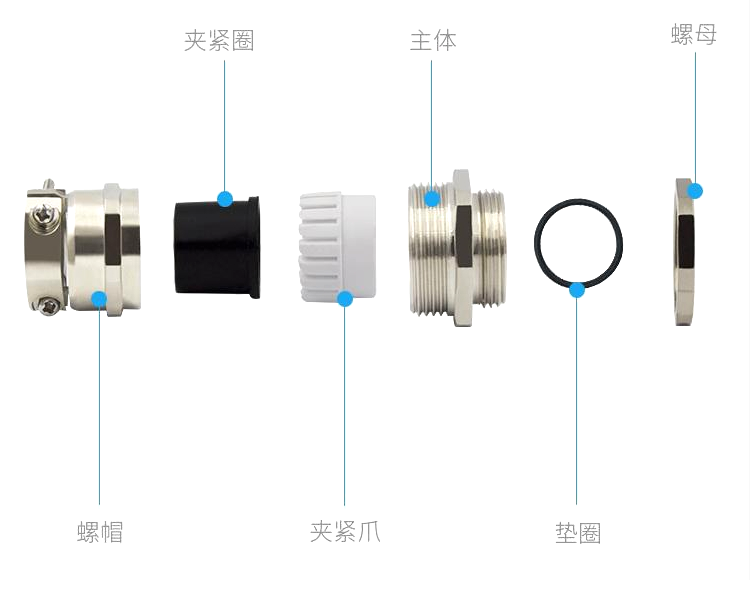 防爆電纜頭的種類多,尺寸大小千變?nèi)f化,沒有固定的,特別是出線孔的大小,壓緊圈,壓緊帽數(shù)不勝數(shù)。材料