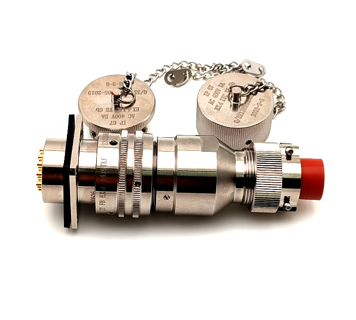 該產(chǎn)品接觸件15芯,額定電流5A,卡口式連接,連接后防水防塵,杜絕可燃物的滲入,鋁合金殼體,屏蔽效果好,化學(xué)鍍鎳
