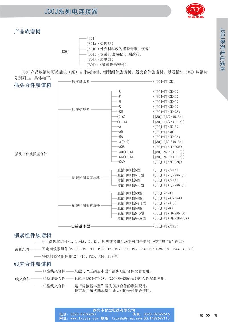 怎樣快速選用J30J微矩形電連接器? 怎樣快速選用J30J微矩形電連接器?沒有用過或者用得少的客戶想快速選好不是一件容易的事情,該產(chǎn)品有點復(fù)雜。為了幫助大家 小編簡單介紹介紹。建議從以下幾個方面考慮:1.外形大小變化。2.端接形式。3.顏色的變化。4.材料的變化。首先先了解產(chǎn)品本身, 高密度,高可靠,小型號產(chǎn)品,采用絞線彈性插針(麻花針),導(dǎo)線截面積適宜0.1mm2~0.15mm2,最小0.07mm2線。符合GJB2446 要求,等效于美軍標(biāo)MIL-DT-83513.規(guī)格有9芯-15芯-21芯-25芯-31芯-37芯-51芯-66芯-74芯-100芯微矩形電連接器。第一步要考慮產(chǎn)品 使用環(huán)境,考慮選什么材料,有鋁合金,銅,不銹鋼材料。一般是鋁合金鍍鎳,輕巧而光亮.J30J-TJ/ZK固定式配套使用,是常用基本型。 材料沒有問題,考慮端接形式,是用壓接式還是焊接式根據(jù)自己的愛好,焊接有點麻煩,焊接技術(shù)要熟能生巧。壓接方便快捷,要有壓 接工具。壓接式無需字母表示,焊接用S表示,在這當(dāng)中考慮印制板焊接,有兩種,直式焊接用N表示,W表示90°彎針焊接。其次考慮 線纜與線纜之間的連接,線焊接或壓接后,規(guī)定好線的長短,測試,打標(biāo)完成一整套流水線。為了防止焊線被松動,可以考慮帶夾線尾部, 有直式和彎式,用A表示,屬于快鎖型,分A1,A2,A3線夾。甩線的方向增加彎式線夾,配有金屬防波套,同側(cè)有一個出線口,夾板與殼體 之間用螺釘固定。用字母C和C1表示。插座和插頭對插后,預(yù)防松動,接觸不良,兩邊還要螺絲連接,插座用P表示,插頭用L表示,型號 多樣,尺寸大小也不一樣,(P1,P2,P25...和L1,L7,L14...)客戶在選用時候這方面無需考慮,只要把尺寸說清楚,廠家會配套好。插座的 大小不是固定不變的,除基本型,夸展型J表示,還有特殊型插座9.6,插頭11.6,用Q字母表示。在殼體與殼體對插后,防止螺釘轉(zhuǎn)動, 在外殼法蘭盤安裝孔處開槽,用字母D表示。最后就是特殊插座要求密封,采用玻璃燒結(jié)工藝,密封性能好,訂貨時用M表示。成本高, 價格不低。最近為適應(yīng)市場開發(fā)了一些大電流混裝電連接器,導(dǎo)線線芯截面積2.0mm2~3.0mm2線大電流,開發(fā)的產(chǎn)品有2芯~9芯,每芯 大20A,大電流插孔S,大電流插針P表示。為表達(dá)更清楚,客戶可以通過下面表格和圖片對照理解: